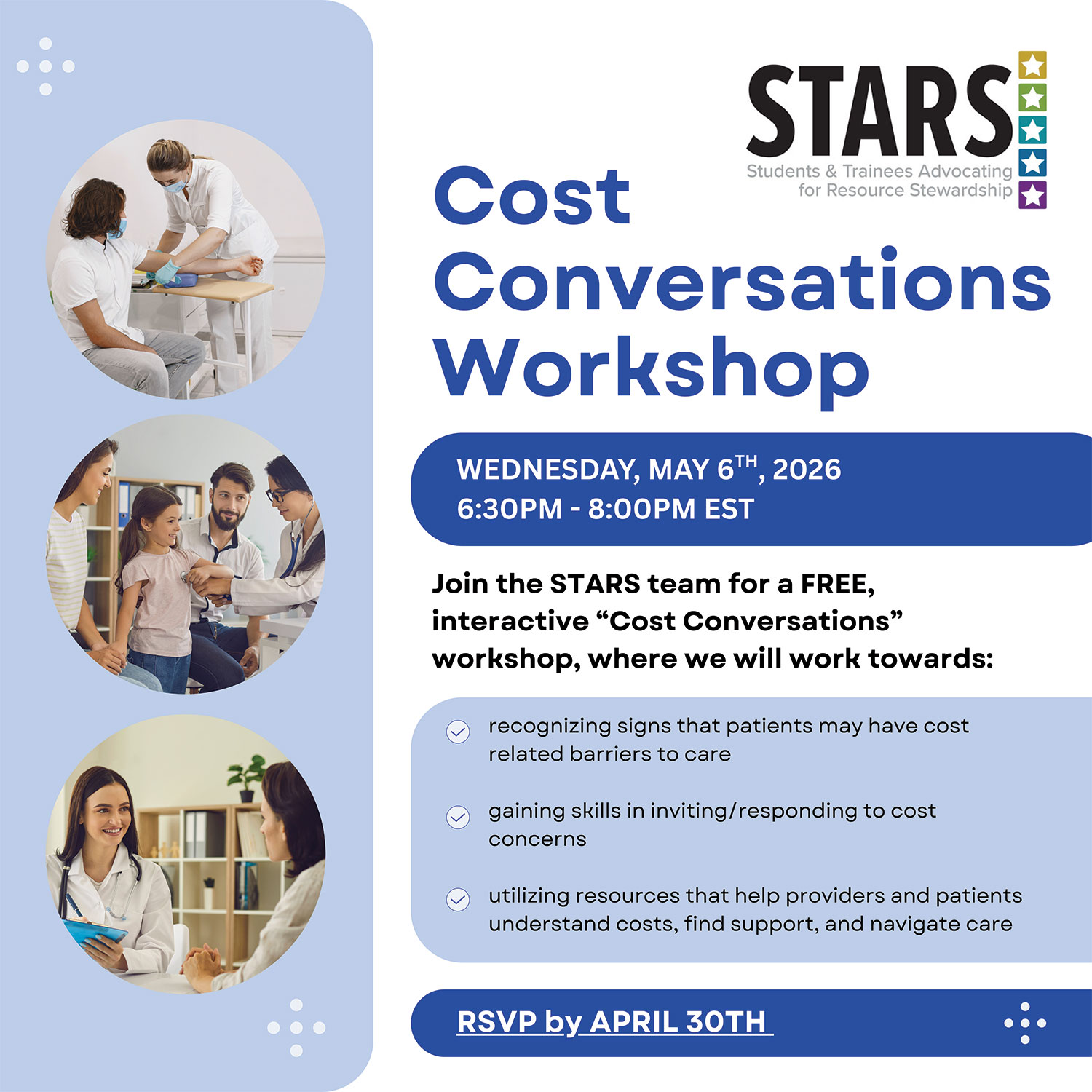 Join the STARS team for a FREE, interactive “Cost Conversations” workshop, where we will work towards: